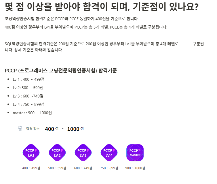 아래는 공식 홈페이지에 기재되어 있는 점수 기준이다. ( https://certi-guide.grepp.co/3f98e337-260d-4ebd-b2eb-7a1fbc5fbbe3 )